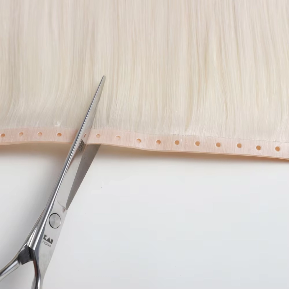 Steg 3: Installera med precision Placera Butterfly Wefts längs ankarraderna, anpassa dem efter det naturliga fallet av kundens hår. Använd kontrollerad spänning för att säkra väften via pärlkanalen – för hårt åtdragning leder till irritation i hårbotten, så hitta den där söta punkten mellan säkerhet och komfort. Trimma inslagen efter behov för att passa huvudets krökning och vik kanterna för att undvika fransar.