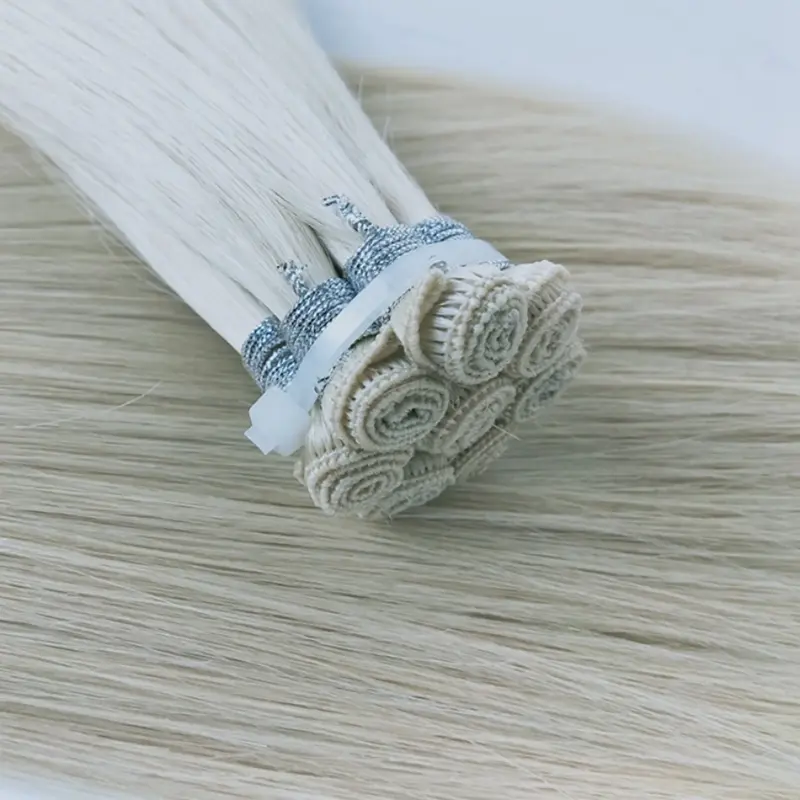 Varje handbunden inslagsförlängning är helt handgjord; Lum Hair väver varje hårstrå varsamt för att göra inslaget ultratunt och flexibelt, så att det sitter tätt mot hårbotten. Noggrant urval och vävning av varje tråd säkerställer maximal osynlighet – perfekt för exklusiva salonger och stylister som kräver högsta kvalitet. Detta hantverksmässiga hantverk är det som gör att den naturliga finishen sticker ut, även om vi inte rekommenderar att man klipper väften – det kan orsaka fällning. Full nagelband handbundna inslag från Lum Hair blandar hållbarhet med komfort och hjälper dig att höja dina kunders upplevelse med lyxiga förlängningar som inte kompromissar med elegans för lång livslängd.