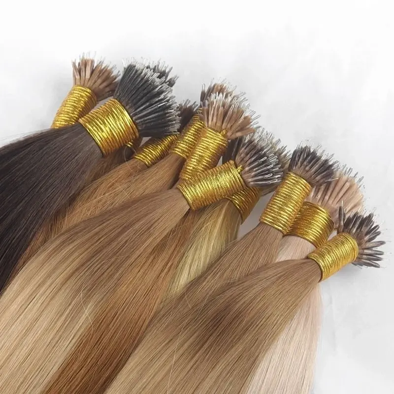 Den innovativa metoden för fastsättning av nanopärlor erbjuder en diskret och lätt lösning för hårförlängningsentusiaster. Dessa små pärlor, tillverkade av material av högsta kvalitet, säkerställer ett säkert grepp om ditt naturliga hår utan att orsaka obehag. Resultatet är ett långvarigt och bekymmersfritt hår, vilket gör att du kan njuta av fördelarna med fylligare, mer voluminöst hår med självförtroende. Lum Hair är en professionell tillverkare, våra Nano Tip Hair Extensions finns i en mängd olika längder, nyanser och skräddarsydda nanospets hårtexturer, vilket gör det enkelt att hitta den perfekta matchningen för din unika stil. Varje hårstrå går igenom urvalsprocessen för att säkerställa en jämn kvalitet och en perfekt blandning med ditt naturliga hår.